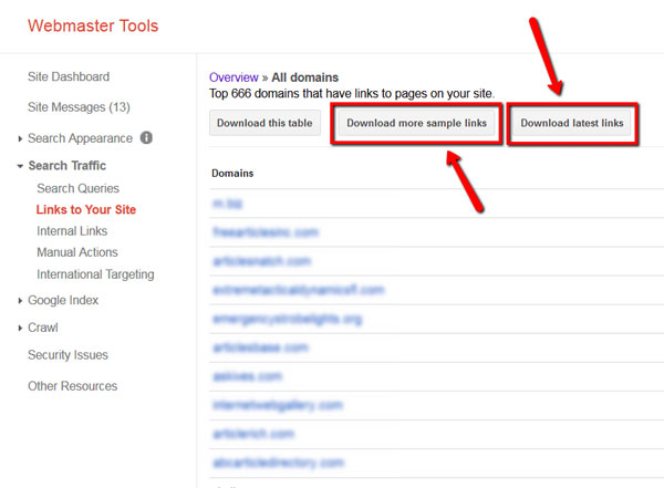 سپس روی “بارگیری جدیدترین پیوندها” کلیک کنید تا تمام لینک ها را در وبسایت خود که Google از آنها می داند بررسی کنید.
